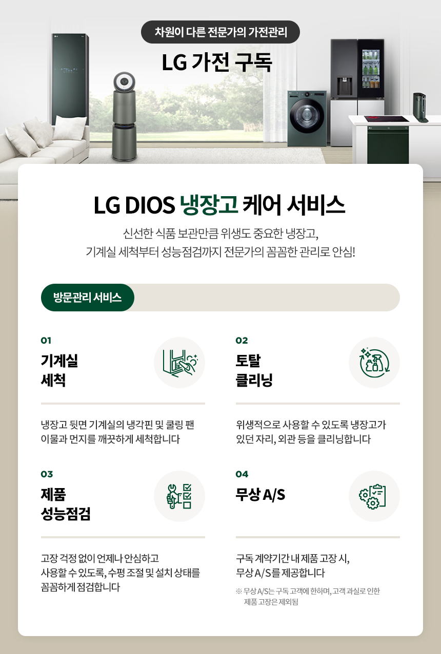 • 다이서렌탈 상품은 렌탈계약기간 중 A/S는 무상으로 진행됩니다. (단, 고객님의 과실로 또는 소모품교체는 유상으로 진행)
